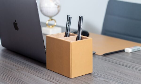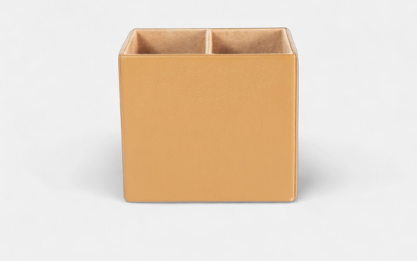 The Premium Light Brown Pencil Case, Featuring a round Shape with a Single Compartment